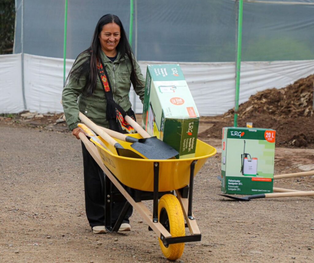 La entrega permitió cerrar dos convocatorias adelantadas en noviembre y diciembre de 2025: “Banco de forrajes: ensilaje de maíz” y “Manos que siembran futuro”, iniciativas orientadas a fortalecer el campo y garantizar la seguridad alimentaria. Cada una de las 100 familias agrícolas beneficiadas recibió un kit compuesto por carretilla, bomba de aspersión de espalda, pala, azadón, paladín y machete, mientras que 67 familias pecuarias accedieron a bultos de ensilaje de maíz para asegurar la alimentación de sus animales en épocas de baja producción de pasto.