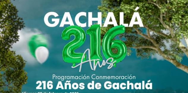 El municipio de Gachalá conmemorará sus 216 años de fundación con una agenda especial que se desarrollará los días 20, 21 y 22 de febrero. La programación iniciará el viernes 20 con un desfile inaugural, actos protocolarios, reseña histórica, muestra cultural y la presentación musical del Trío “Añoranzas”, además de un gran bingo bailable en el polideportivo municipal Juan XXIII.