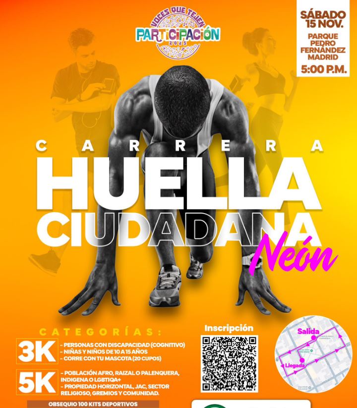 Este sábado 15 de noviembre, el Parque Pedro Fernández será el punto de encuentro para la Carrera Huella Ciudadana Neón 2025, una experiencia deportiva y cultural que busca promover la participación, la inclusión y el sentido de comunidad entre los madrileños.