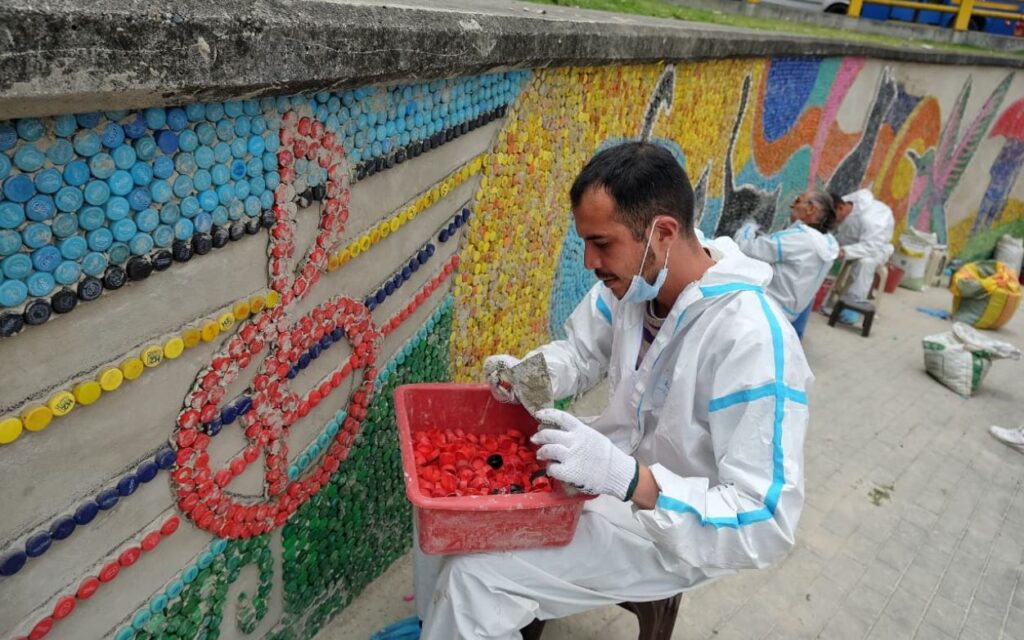 ¡Más de 80.000 tapas plásticas se convierten en un mural que promueve sostenibilidad, inclusión social y resignificación urbana en Bogotá!